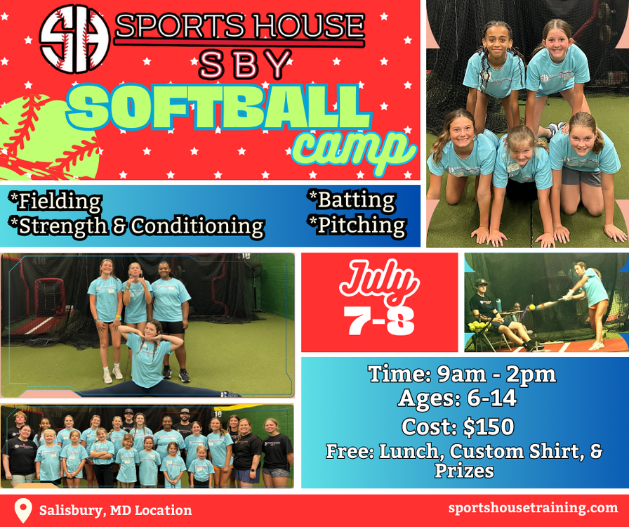 The Schools OUT Softball Camp will focus on pitching, batting and fielding. We will also have a strength & conditioning portion each day.